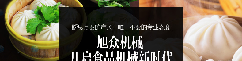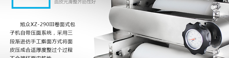 旭眾牌XZ-290III型卷面式包子機(jī)是由本公司自主設(shè)計研發(fā),精工打造的一款專業(yè)仿手工生產(chǎn)制作各種包餡類食品的高效實用型機(jī)械設(shè)備,是一款生產(chǎn)肉包、菜包、小籠包、豆沙包、奶黃包等多種包餡類產(chǎn)品的多功能實用新型食品機(jī)。