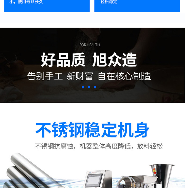 XZ-960多功能包子機(jī)采用新設(shè)計出面系統(tǒng),帶有輔助撥面裝置投面后無需重復(fù)使用手壓面/推面,有效提高工作效率/預(yù)防安全隱患;絞龍采用新概念,減少擠壓次數(shù),有效保護(hù)面筋、面團(tuán)不發(fā)熱,保證面皮的口感;做湯包時,皮可更薄,面皮里外更光滑(可當(dāng)氣球吹大)有效保護(hù)餡料里面的湯汁不會漏出或被吸收;出面斗帶有自動恒溫制冷系統(tǒng)最低溫度可達(dá)2℃ ,冷媒:R134A(特殊要求可按要求定制)(若定制,貨期增加20天工作日);操作簡單易懂,拆裝簡單,清洗方便;適合產(chǎn)品范圍:湯包,小龍包,速凍包,生煎包,發(fā)面包子,各類餡料包子等產(chǎn)品