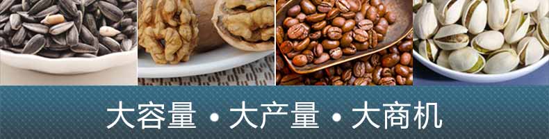 7.適合加工各種干果和堅(jiān)果類,如;板栗、花生、瓜子、松籽、榛子、杏仁、菜籽、咖啡豆、紅棗、芝麻、、核桃、各種豆類、麥類、米類等。適用于在各大商場(chǎng)、超市、食品專賣店、連鎖店、街道小吃等人口密集區(qū)等處定點(diǎn)經(jīng)營(yíng)和加工。是您創(chuàng)業(yè)致富的好幫手。