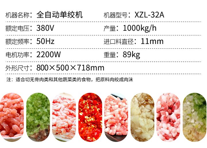XZL-32A單絞機吸取同行之優(yōu)點,改進新型絞肉切肉機械,它能切豬肉、羊肉、牛肉、魚及其它各種肉類、所切肉片厚度適中切片效率高,是餐廳、賓館、酒樓、單位食堂等絞肉切肉的理想機械,該機外形獨特,操作方便,維修簡單,工作效率高,在同行業(yè)中處領(lǐng)先地位,與食物接觸部分均采用不銹鋼制造符合食品衛(wèi)生標準。