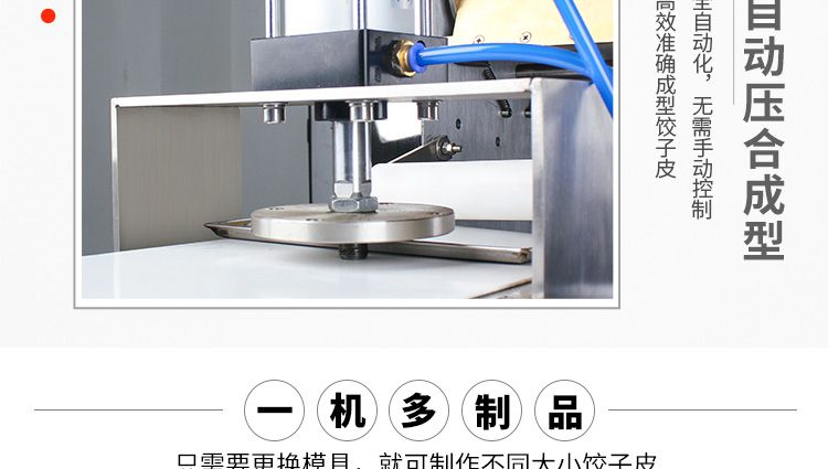 JGB-90型餃子皮機(jī)是我公司開發(fā)生產(chǎn)的先進(jìn)餃子皮生產(chǎn)設(shè)備。可以簡(jiǎn)單更換模具(可根據(jù)客戶定制不同形狀、尺寸的模具),本設(shè)備采用氣缸運(yùn)動(dòng)。本廠生產(chǎn)的90餃子皮機(jī),采用多道壓面輥壓面,壓面效果優(yōu)異,壓出的面皮筋道,進(jìn)一步提高所包出的餃子口感。