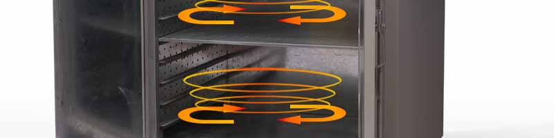 本運(yùn)風(fēng)箱分水平對流式和上下對流式兩種。工作室較小的采用水平對流式,發(fā)熱部分在上部,工作室較大的則采用上下對流式,發(fā)熱部分在上部。電機(jī)安裝在上部或后部,通過帶動(dòng)風(fēng)輪將熱量流通到工作室,如此循環(huán)。