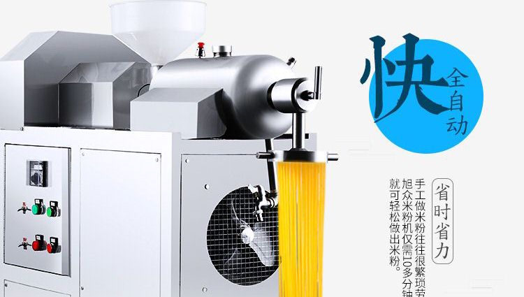 改進(jìn)型米粉、米線專用機,裝有自動溫空裝置,整個生產(chǎn)過程設(shè)備均在恒溫狀態(tài)下運行,自動化程度高,操作簡單,l人即可生產(chǎn)??缮a(chǎn)米粉、米線、桂林米粉、過橋米線、年糕等產(chǎn)品。各種形狀都可生產(chǎn)(圓、扁),加工食品外表光滑,厚薄、寬窄、粗細(xì)均勻可調(diào),筋軟適度,有彈性,口感柔軟、味道純正。