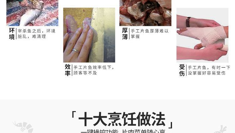 ?本機(jī)采用優(yōu)質(zhì)不銹鋼托魚板,衛(wèi)生干凈,刀片采用進(jìn)口材料;