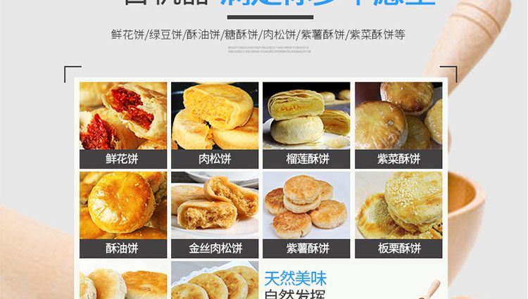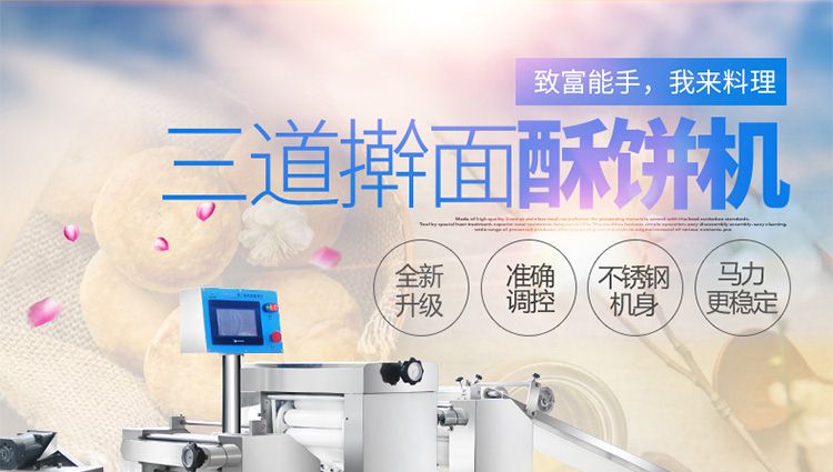 XZ-15C三道搟面酥餅機(jī),仿手工制作面食產(chǎn)品的機(jī)型,占地面積小,重量輕,運用搟面杖壓面和打擊面團(tuán),以保證高面筋性和面帶的密度,并綜合考慮面食的口感而研發(fā)??缮a(chǎn)東北糖酥餅,東北大香酥餅,蘇式月餅,芝麻餅,鮮花餅,老婆餅。購機(jī)免費提供工藝技術(shù)
