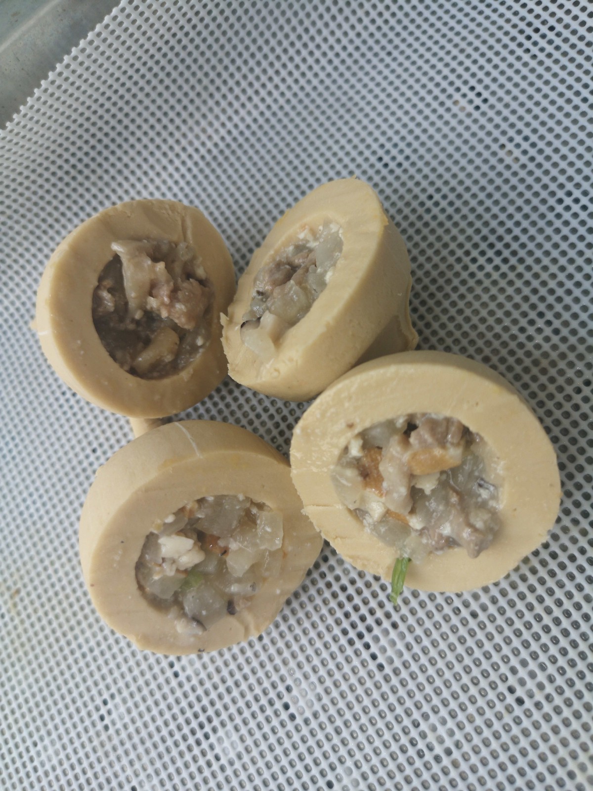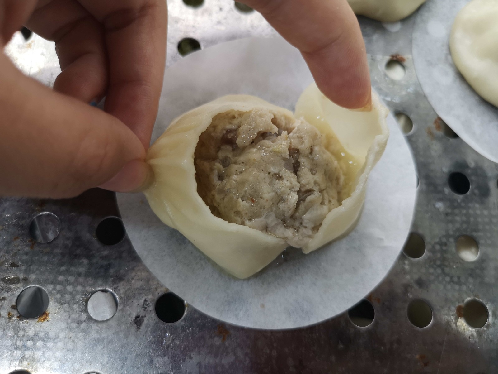 第三步:將拌好的餡料倒入餡斗中,啟動開關(guān)調(diào)整好皮餡比例就可以開始生產(chǎn)包子了