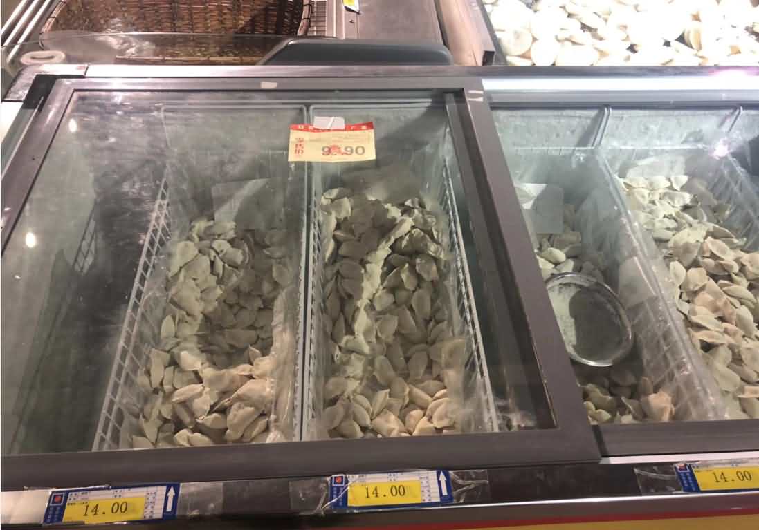 早上的時(shí)候速凍水餃剛裝冷柜的實(shí)景
