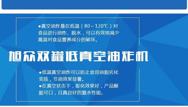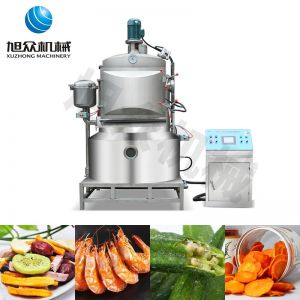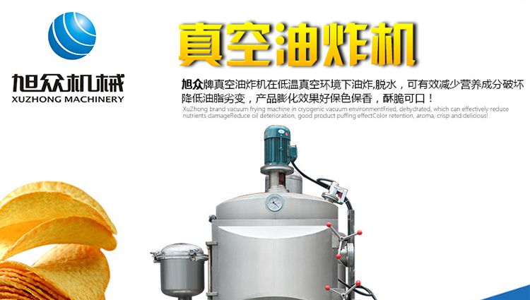 ●真空油炸是在低溫(80~120℃)對食品進行油炸、脫水,可以有效地減少高溫對食品營養(yǎng)成分的破壞。