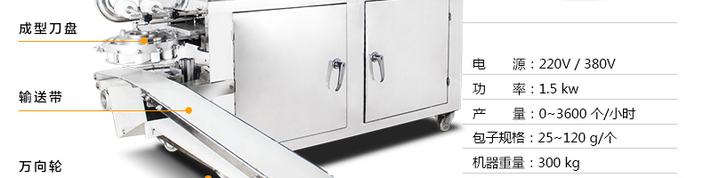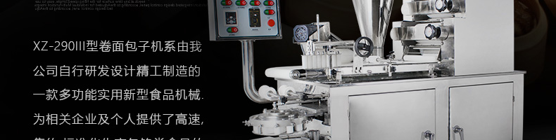 旭眾牌XZ-290III型卷面式包子機(jī)是由本公司自主設(shè)計研發(fā),精工打造的一款專業(yè)仿手工生產(chǎn)制作各種包餡類食品的高效實用型機(jī)械設(shè)備,是一款生產(chǎn)肉包、菜包、小籠包、豆沙包、奶黃包等多種包餡類產(chǎn)品的多功能實用新型食品機(jī)。