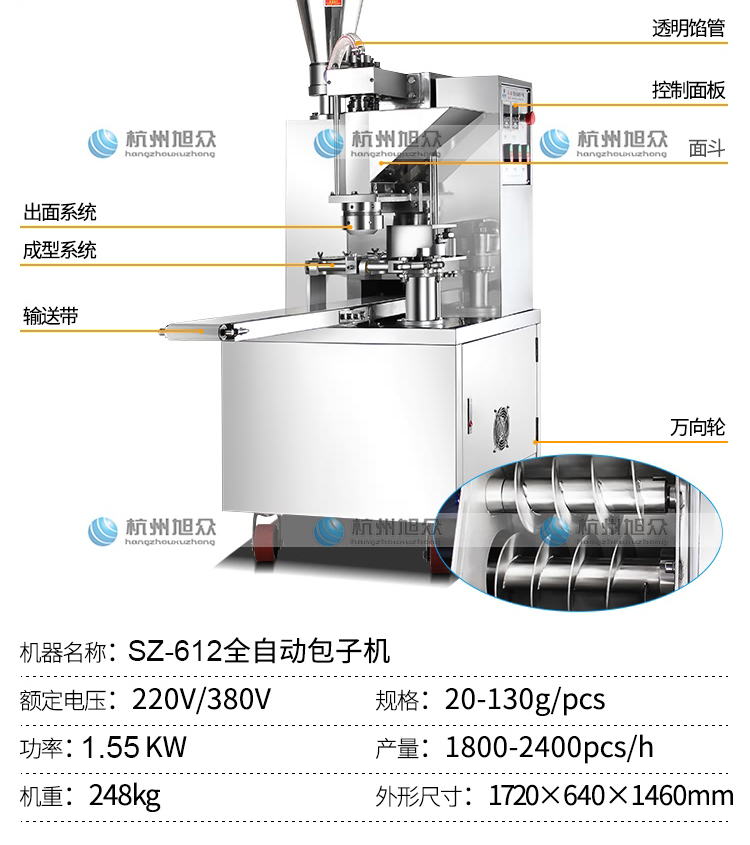 SZ-612全自動(dòng)包子機(jī),22800元(不含運(yùn)費(fèi)不含稅價(jià)格),SZ-612型全自動(dòng)包子機(jī)是一款設(shè)計(jì)先進(jìn),結(jié)構(gòu)簡單,操作方便,生產(chǎn)性能穩(wěn)定的設(shè)備。其體積小重量輕,外殼主要部件采用不銹鋼制作,外觀精美。