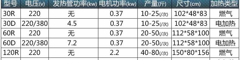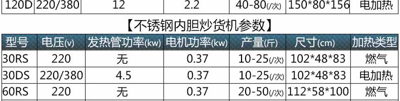 1.炒貨機(jī)有30型.60型.120型三種,每個(gè)型號(hào)各有燃?xì)饧訜岷碗娂訜醿煞N方式。