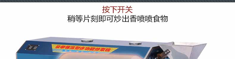 8.炒貨機(jī)結(jié)構(gòu)合理,操作簡(jiǎn)單,熱效率高,所炒制食物非常均勻、口感良好!