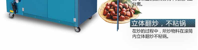 3.用氣加熱的炒貨機(jī)配有節(jié)能灶頭,可調(diào)節(jié)火力大小。用電加熱的炒貨機(jī)帶有溫控儀,可任意調(diào)節(jié)溫度。