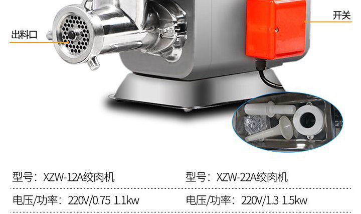 型號(hào) | XZW-12A絞肉機(jī) | XZW-22A絞肉機(jī) |