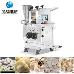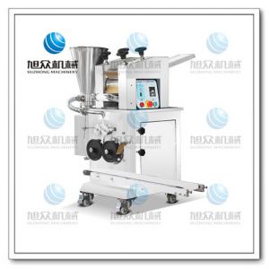 旭眾牌JGB-180型仿手工餃子機是我公司開發生產的先進的自動餃子生產設備。設備包括主動壓皮部分、自動供餡部分、自動包合成型部分、自動成品輸送部分,并且只要更換模具,就可制鍋貼等食品。