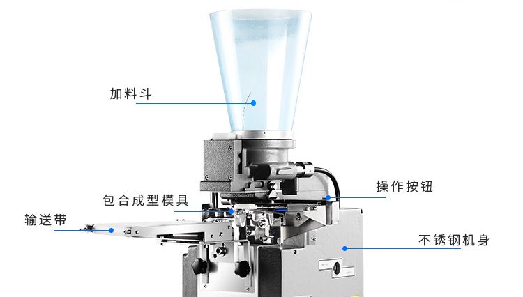 JGB-28型小型餃子機可包蒸餃、煎餃、水餃。仿手工包合,保持了餡和皮的原汁原味。可包米面皮、薯條粉皮等特殊材質餃子。任何葷、素餡料都可包制。外觀小巧、精致,操作簡單。本機提供免費上門培訓指導、安裝、調試、面點工藝傳授。