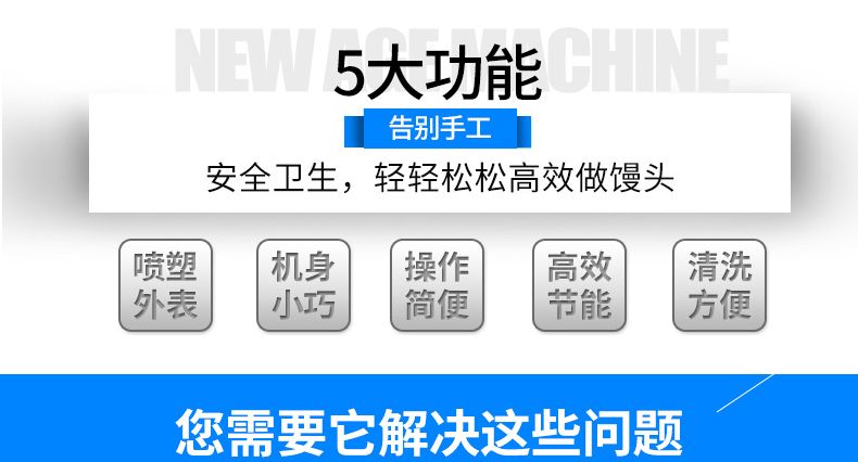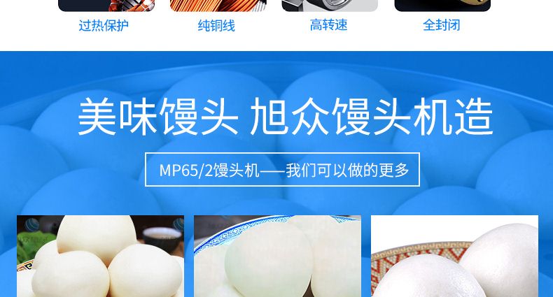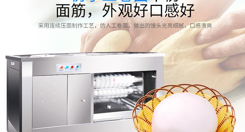 ☆ 外型美觀,質量可靠。制作饅頭原料采用發(fā)酵面,所制的饅頭大小均勻,饅頭質量好,表面光滑。