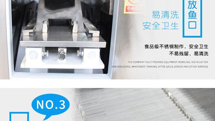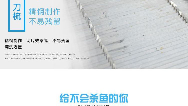 ?本機(jī)采用優(yōu)質(zhì)不銹鋼托魚板,衛(wèi)生干凈,刀片采用進(jìn)口材料;