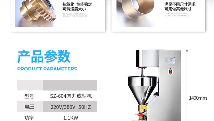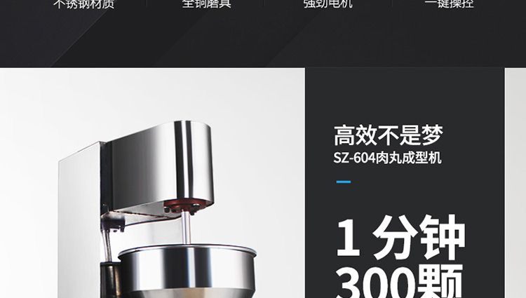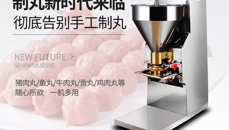 SZ-604肉丸成型機(jī),肉丸成型機(jī)采用不銹鋼材質(zhì),丸子直徑可達(dá)15-35mm,可以制作各類(lèi)爽脆,有韌性、有彈性的豬肉丸、魚(yú)丸、牛肉丸、貢丸、雞肉丸等