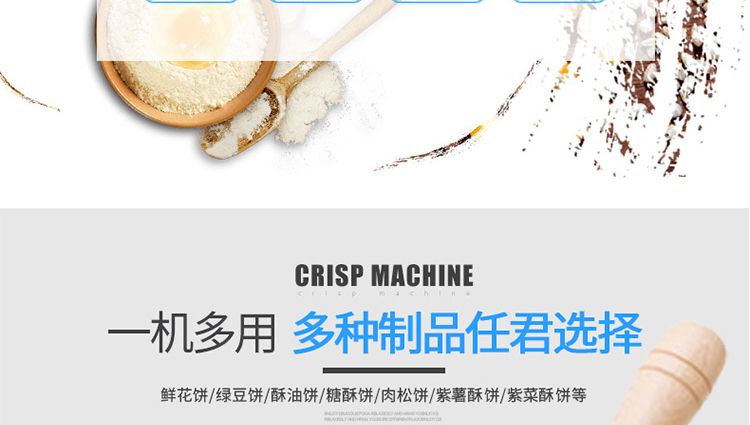 ?生產(chǎn)速度快,效率高,生產(chǎn)流程流暢,各環(huán)節(jié)都輔以電控設備控制,不會出現(xiàn)堵面,破酥等現(xiàn)象;