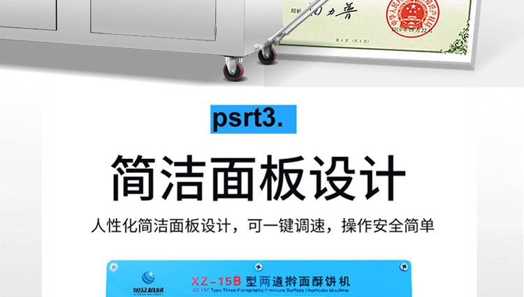 旭眾牌XZ-15B二道搟面酥餅機是我公司仿手工制作面食產(chǎn)品的機型,占地面積小,重量輕,它吸收國內(nèi)傳統(tǒng)手工制作技術,即運用搟面杖壓面和打擊面團,以保證高面筋性和面帶的密度,并綜合考慮面食的口感而研發(fā)。