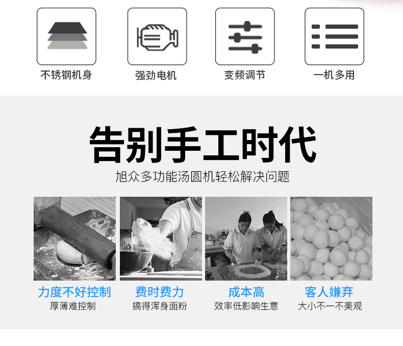 旭眾牌VFD-1200無(wú)餡湯圓機(jī)又稱(chēng)珍珠湯圓機(jī)、桂花湯圓機(jī)。
