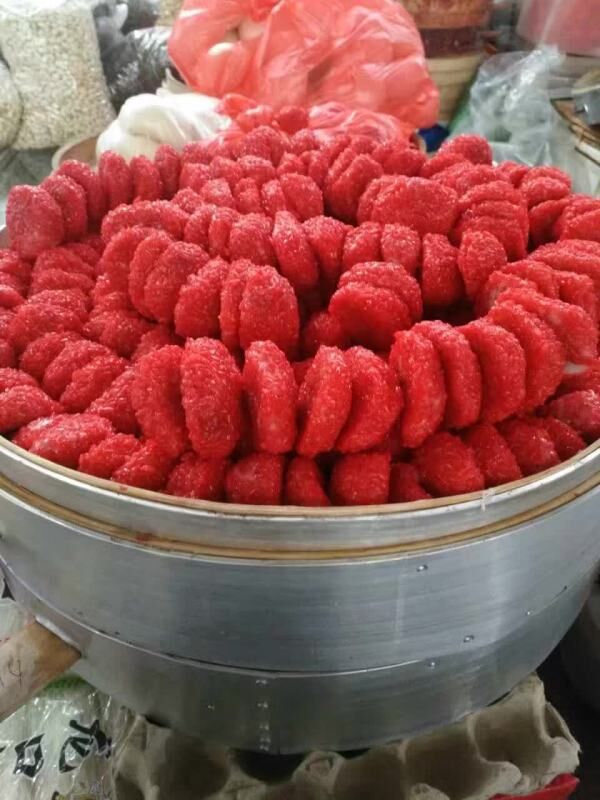 如今食品廠里已經(jīng)開始用旭眾湯圓機制“楊梅馃”出售,解除了手工制作的勞累,不但口感極好,而且做得如同水果楊梅一般大小,成了名副其實的“楊梅馃”。鄉(xiāng)間“分喜馃”的習俗有的也被“喜糖”替代了。