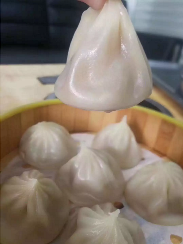4. 做湯包時(shí),皮可更薄,面皮里外更光滑(可當(dāng)氣球吹大)有效保護(hù)餡料里面的湯汁不會(huì)漏出或被吸收;