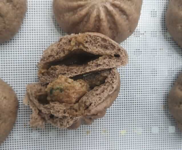 SZ-63包子機(jī)升級(jí)后SZ-612包子機(jī),那么兩者之間區(qū)別在哪里,花紋從九褶變成十二褶,客戶現(xiàn)場試機(jī)SZ-612包子機(jī)做黑米包效果如圖: