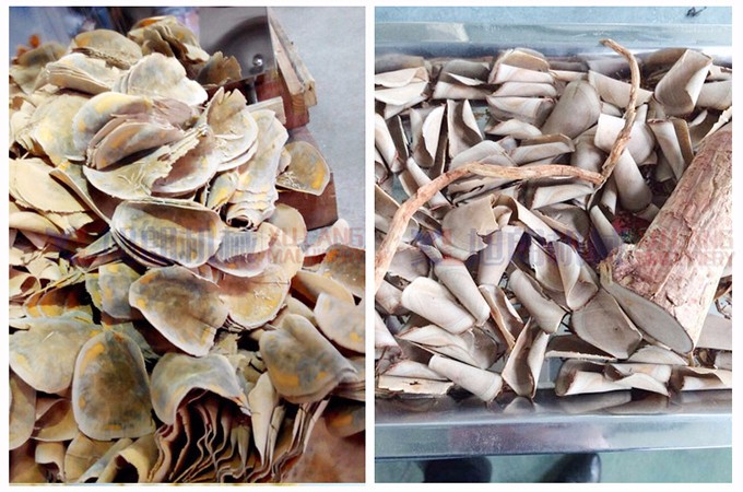 入    料:將木質(zhì)壓模取出,調(diào)整好切片厚度,開啟機(jī)械后,將物料放入進(jìn)料口中即可